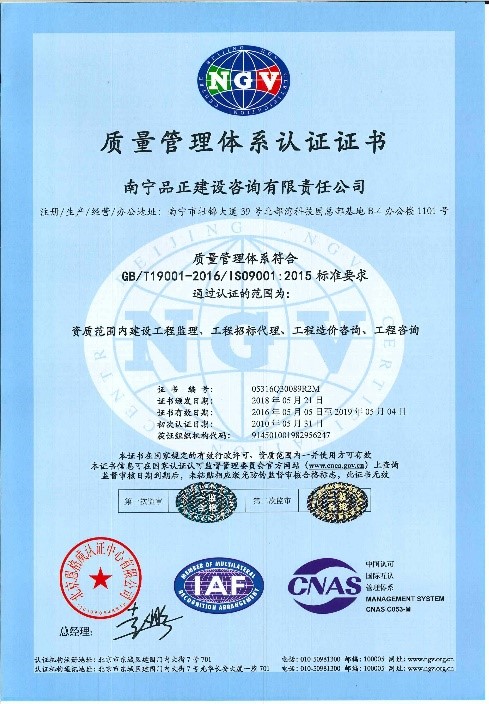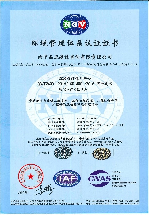 2018年5月,北京恩格威認(rèn)證中心的QES審核員到南寧品正進(jìn)行質(zhì)量管理體系、環(huán)境管理體系和職業(yè)健康安全管理體系(簡(jiǎn)稱QHES管理)通過(guò)認(rèn)證審核工作。審核組認(rèn)為,南寧品正現(xiàn)行的QHES管理系統(tǒng)文件符合國(guó)際國(guó)內(nèi)有關(guān)強(qiáng)制性規(guī)定,適用于公司目前開展的各項(xiàng)業(yè)務(wù)。