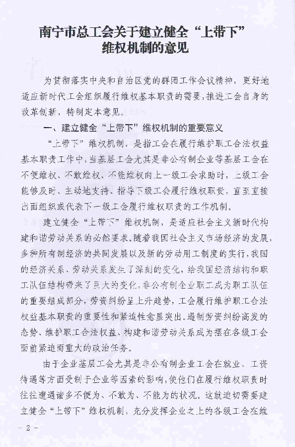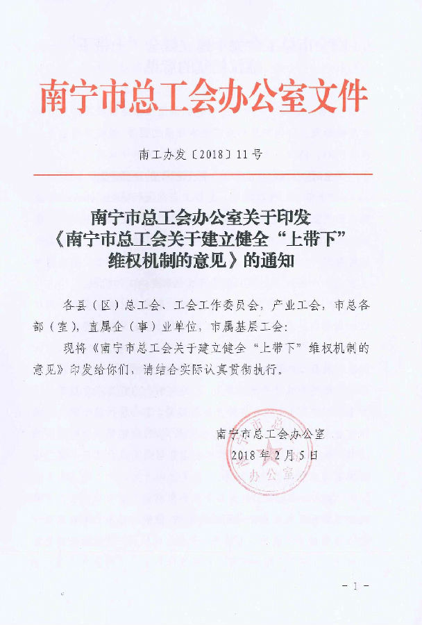 南寧市總工會(huì)辦公室關(guān)于印發(fā)《南寧市總工會(huì)關(guān)于建立健全“上帶下”維權(quán)機(jī)制的意見》的通知