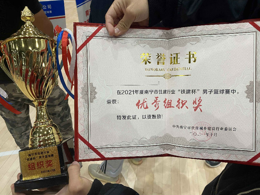 為進一步提高黨員群眾的身體素質(zhì),豐富黨員群眾的體育生活,增強黨組織的凝聚力和戰(zhàn)斗力,2021年10月19日,中共南寧品正建設(shè)咨詢有限責任公司支部委員會、南寧品正建設(shè)咨詢有限責任公司籃球隊參加了中共南寧市住房城鄉(xiāng)建設(shè)行業(yè)委員會舉辦的“鐵建杯”男子籃球比賽,經(jīng)過拼搏,獲得第四名,并榮獲了“優(yōu)秀組織獎”稱號。