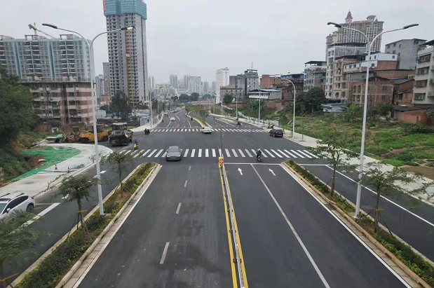 該項目建成通車后,進(jìn)一步拓展了城市脈絡(luò),長堽路和南梧路的車輛均可通過長湖路北延長線實現(xiàn)互相切換,不需要再繞行廂竹大道,極大提高通行效率,并且在一定程度上緩解廂竹大道的交通壓力。同時,該項目也極大方便東溝嶺片區(qū)市民的交通出行,促進(jìn)東溝嶺片區(qū)進(jìn)一步融入城市發(fā)展圈。