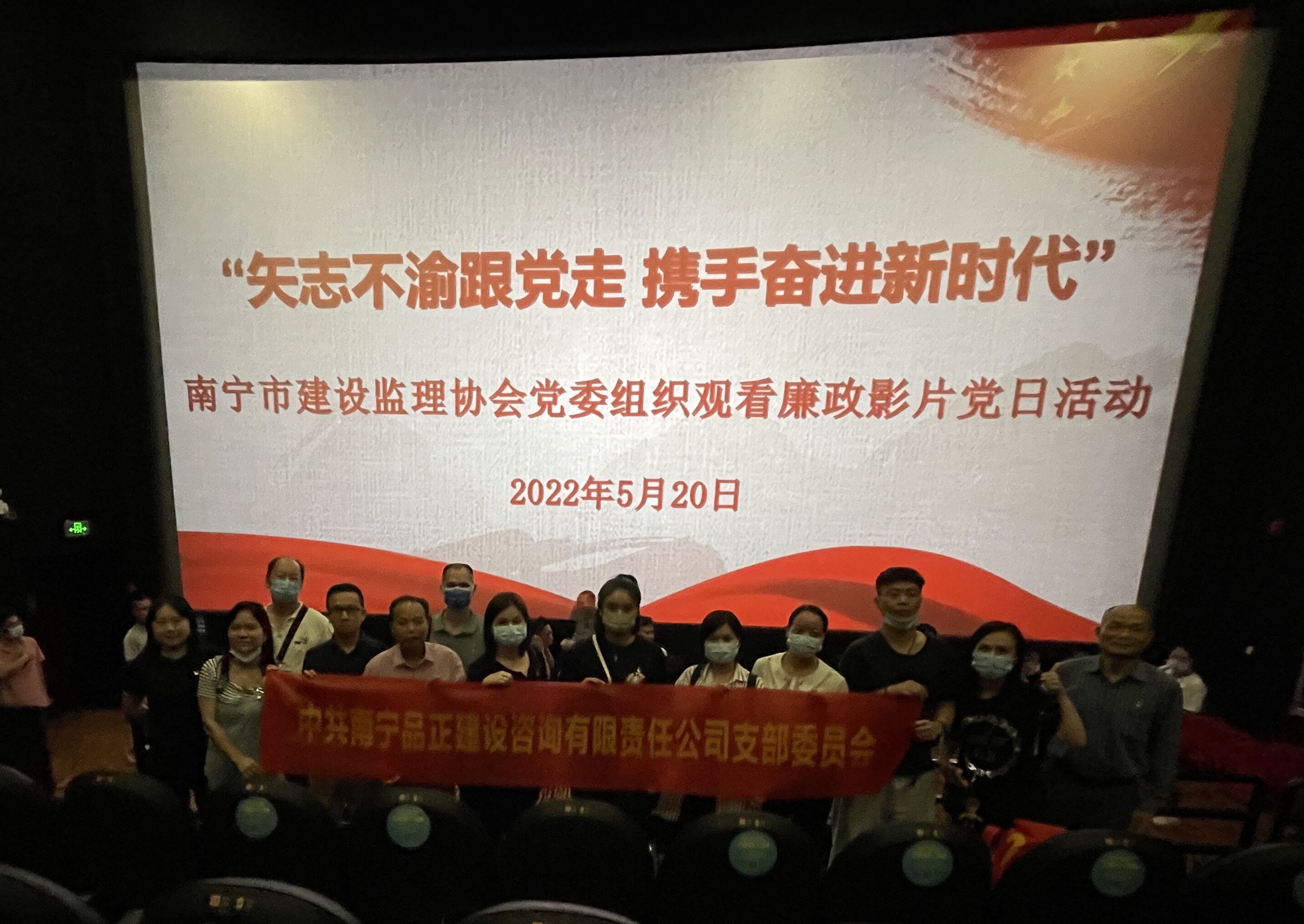 為進(jìn)一步加強(qiáng)反腐倡廉教育,深入推進(jìn)廉政文化建設(shè),學(xué)習(xí)貫徹習(xí)近平總書記關(guān)于黨風(fēng)廉政建設(shè)和反腐敗斗爭的重要言論,2022年5月20日下午,南寧市建設(shè)監(jiān)理協(xié)會黨委開展“黨風(fēng)廉政”主題黨日活動,組織觀看反腐倡廉電影《決不姑息》,接受黨風(fēng)廉政警示教育。公司黨支部組織全體黨員及入黨積極分子一起觀影。