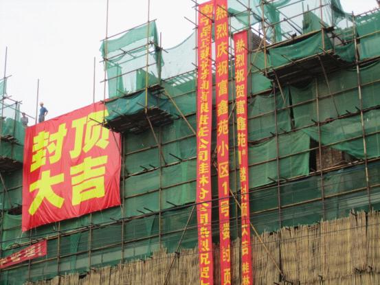 由我司監(jiān)理的靈川縣大圩鎮(zhèn)大圩富鑫苑住宅小區(qū)1#樓工程于2012年4月29日順利封頂,并于當(dāng)日上午9時18分舉行隆重的封頂儀式。出席封頂儀式的有當(dāng)?shù)卣块T、主管部門、施工單位、各有好合作單位及我分公司領(lǐng)導(dǎo)。各部門領(lǐng)導(dǎo)在儀式舉行后,對工地進(jìn)行現(xiàn)場參觀檢查,對工程質(zhì)量及我分公司的工作作出一致好評。