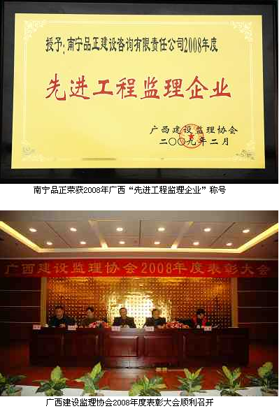 為推動(dòng)我區(qū)建設(shè)監(jiān)理行業(yè)的快速發(fā)展,引導(dǎo)我區(qū)企業(yè)創(chuàng)建“名牌監(jiān)理企業(yè)”,激發(fā)監(jiān)理人員的愛崗敬業(yè)精神,在全區(qū)樹立起建設(shè)監(jiān)理行業(yè)的良好形象,近日,廣西建設(shè)監(jiān)理協(xié)會(huì)在南寧召開了“廣西建設(shè)監(jiān)理協(xié)會(huì)2008年度表彰大會(huì)”。大會(huì)授予南寧品正建設(shè)咨詢有限責(zé)任公司等16家單位“廣西先進(jìn)工程監(jiān)理企業(yè)”稱號(hào),授予南寧品正曾振華、黃燕玲和陳秋等36人“廣西優(yōu)秀總監(jiān)理工程師”稱號(hào),授予南寧品正姚思清、劉豫黔和宋熒冬等40人“廣西優(yōu)秀監(jiān)理工程師”稱號(hào)。大會(huì)號(hào)召受到表彰的先進(jìn)單位和優(yōu)秀個(gè)人,戒驕戒躁、再接再厲,開拓進(jìn)取,再創(chuàng)佳績,為全區(qū)建設(shè)監(jiān)理事業(yè)的發(fā)展做出更大的貢獻(xiàn)。