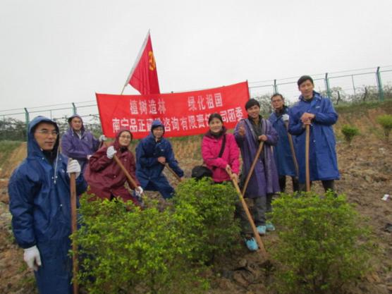 植樹節(jié)前夕,南寧品正團(tuán)委組織10名團(tuán)員青年,在相思湖可利江公園邊,會同市直機(jī)關(guān)及南寧市的1500多名團(tuán)員青年共同參加由自治區(qū)綠化委、共青團(tuán)廣西區(qū)委、林業(yè)廳主辦的“綠滿八桂 綠動青春——2011年廣西青少年綠色基地建設(shè)推進(jìn)月暨綠映水城首府青年大種樹活動啟動儀式”,短短一個上午,南寧品正青年志愿者們和大家一起共種植樹木300多株,為綠城建設(shè)生態(tài)文明城市又增添一抹新綠,以實際行動推動城鄉(xiāng)造林綠化,建設(shè)生態(tài)文明家園。
